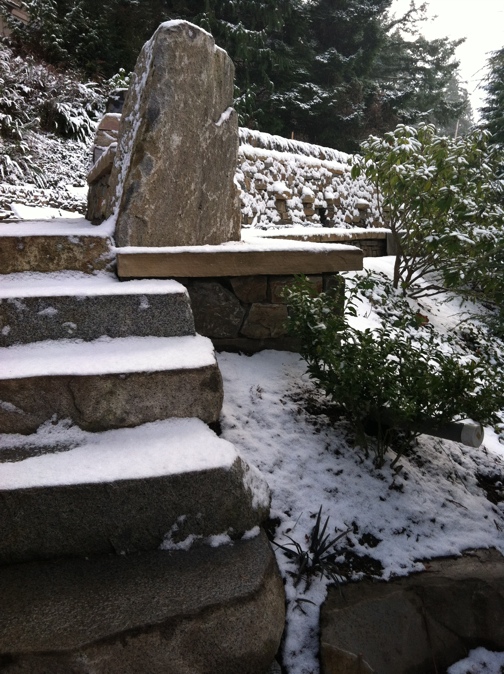 Transitional Dry stone elements in the landscape help us read and move through it more smoothly, flowing from one point to the next. They strengthen connections between plantings and hardscaping, indicate relationships with materials and pattern languages, provide us with contrast, give us direction physically & visually with destination features, as well as providing high quality dry stone structures. A landscape may require stairs, a dry stone retaining wall, an arch, a dry stone fence, or any number of other stone elements to solve an existing transition. Each site is unique to the landscape, design parameters, materials, and budget.